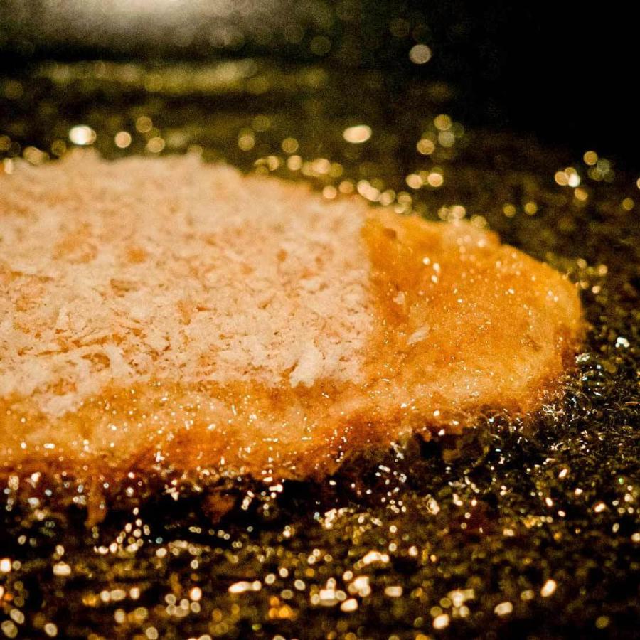 スジと脂肪のない1枚の赤身肉をカツレツ用に加工処理しております。